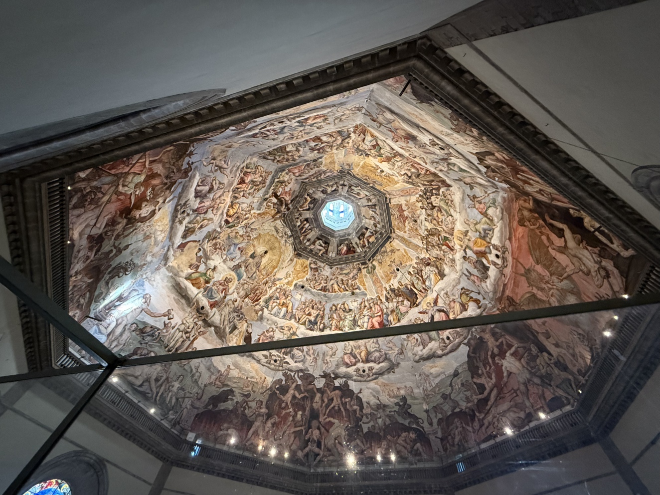 丸天井のことを「クーポラ」と呼びますが、天井一面に広がるのが「最後の審判」。