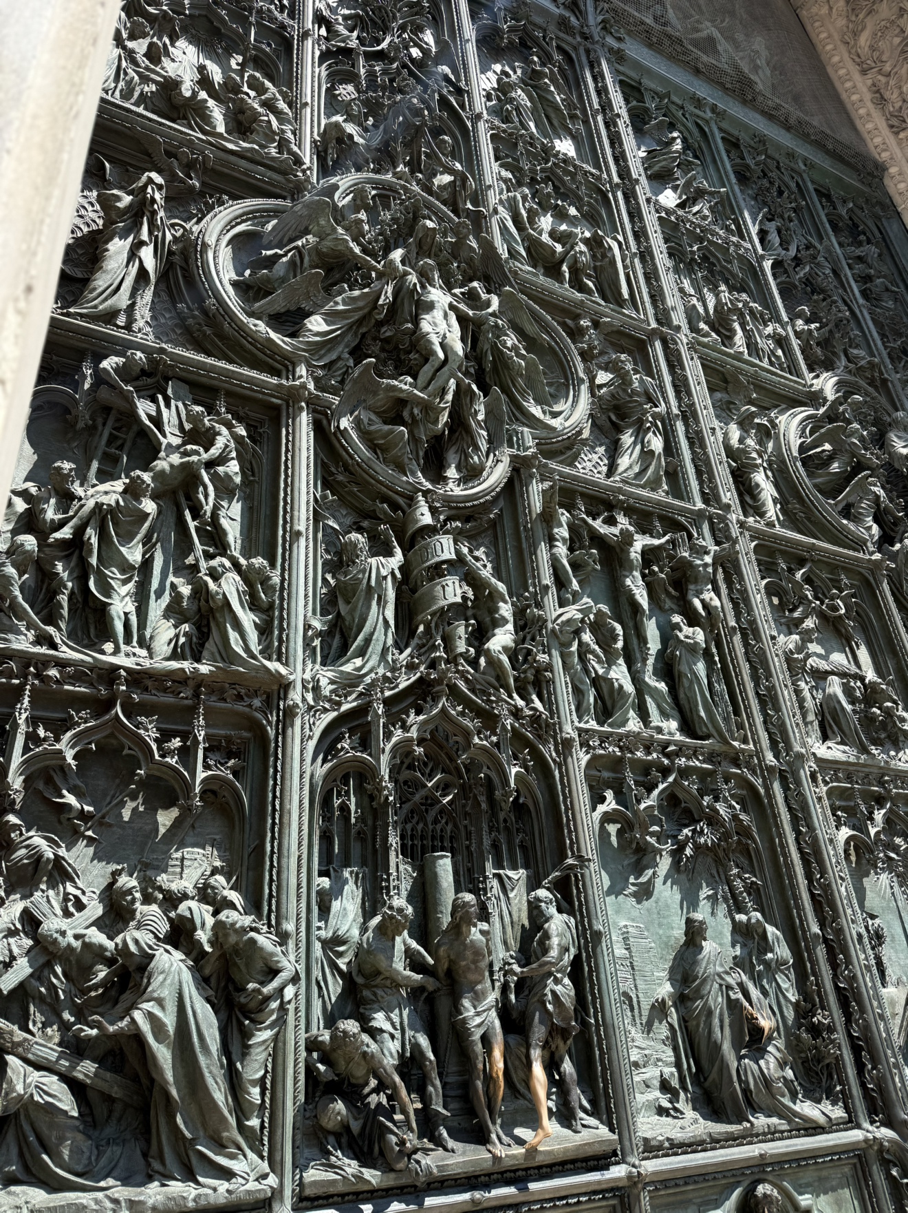 入り口にある5枚の青銅製の大扉には、聖書の物語やミラノの歴史が精緻に彫刻されていました!